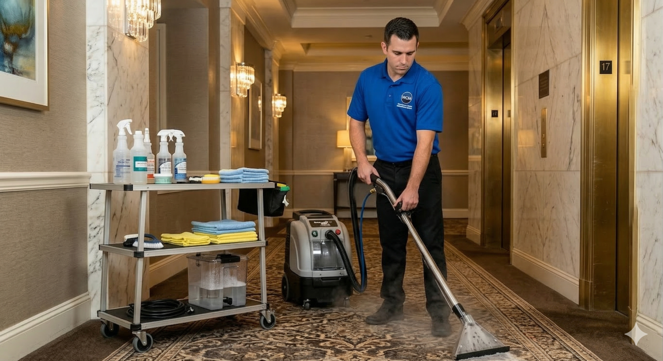 Carpet Care & Restoration — Deep extraction and spot treatment to revive color, lift embedded soil, and keep corridors and suites pristine underfoot.